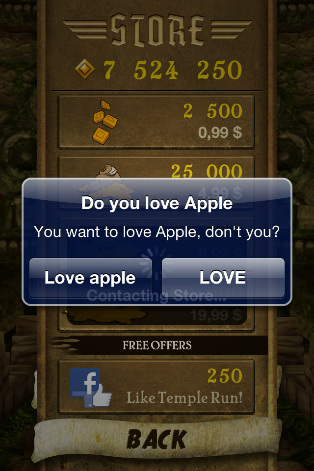 Go to your application and try to buy something! You will see dialog window asks you to Like in-appstore.com, “LIKE” IT! When iDevice asks you to enter credentials, enter random credentials, not yours